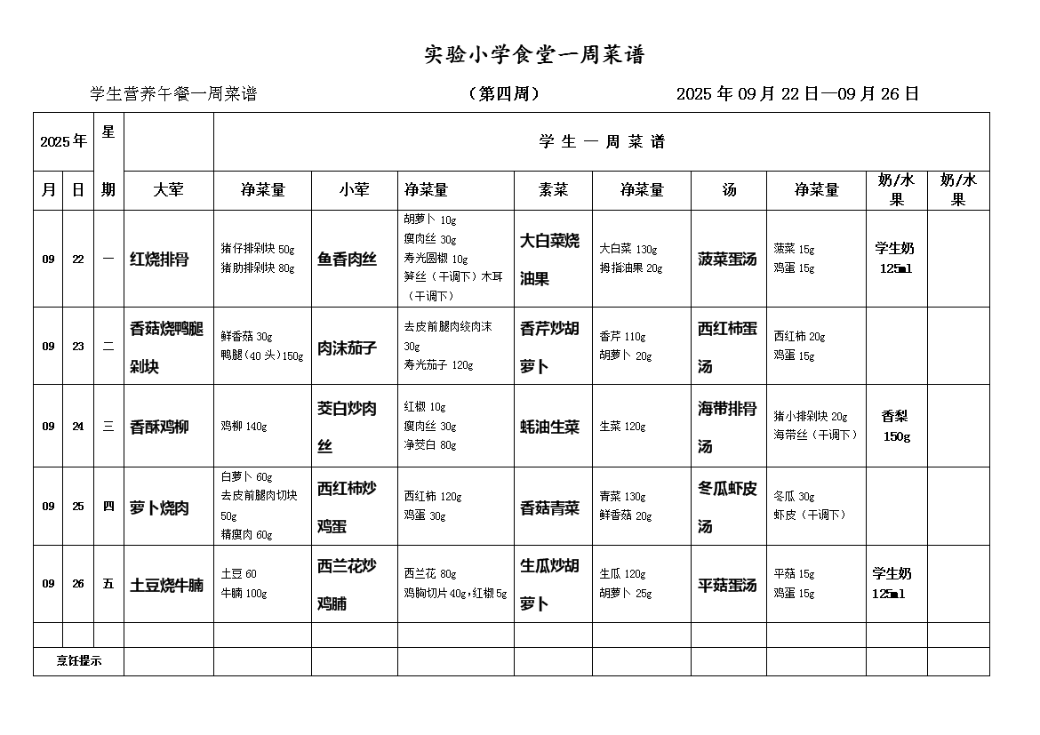 下一篇2025-2026学年度第一学期第五周师生一周菜谱