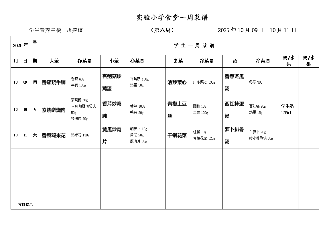 下一篇2025-2026学年度第一学期第七周师生一周菜谱