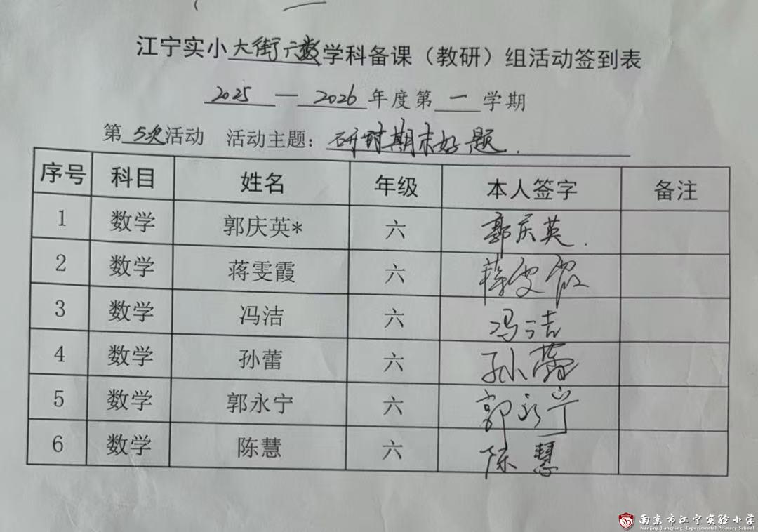 此次备课组活动,为六年级数学期末复习和命题工作指明了方向,凝聚了教师的集体智慧,体现了学校教研工作的扎实推进。相信在全体教师的共同努力下,六年级学生定能在期末检测中展现出良好的学习成果。