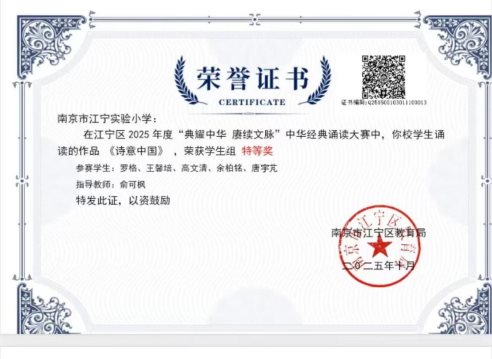 声韵流芳,文脉赓续——我校师生在江宁区2025年度经典诵读大赛中荣获佳绩